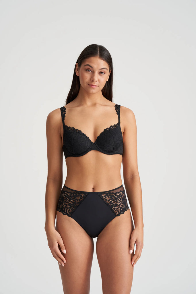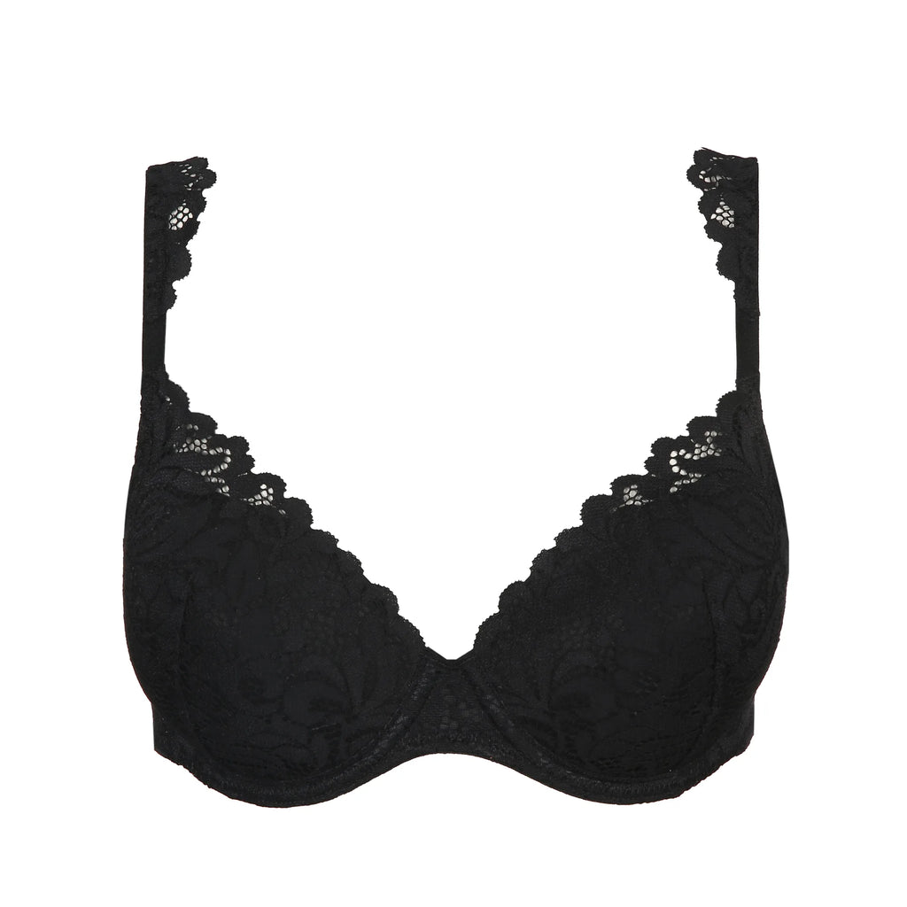 Elis padded bra has opulently adorned cups and elegant lace on the back. The lace straps are almost too pretty to hide under clothes. So show them off! Black is a timeless fashion classic that never goes out of style.