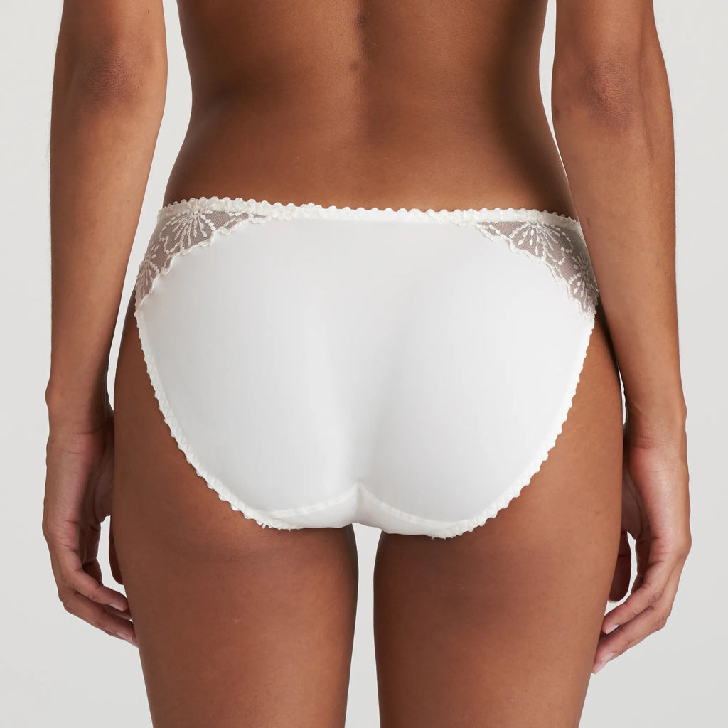 The elegant embroidery runs beautifully over the hips and highlights the elegant cut of the Rio briefs. Natural goes with everything and is perfect for brides!
