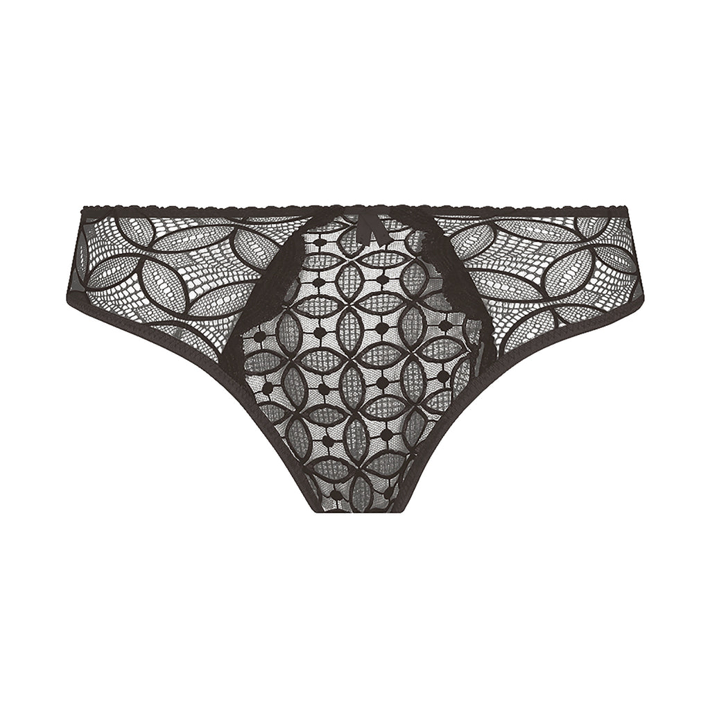 Romy rio brief with plain solid back. Stretchy lace at the front of the brief with embroidered side panels.