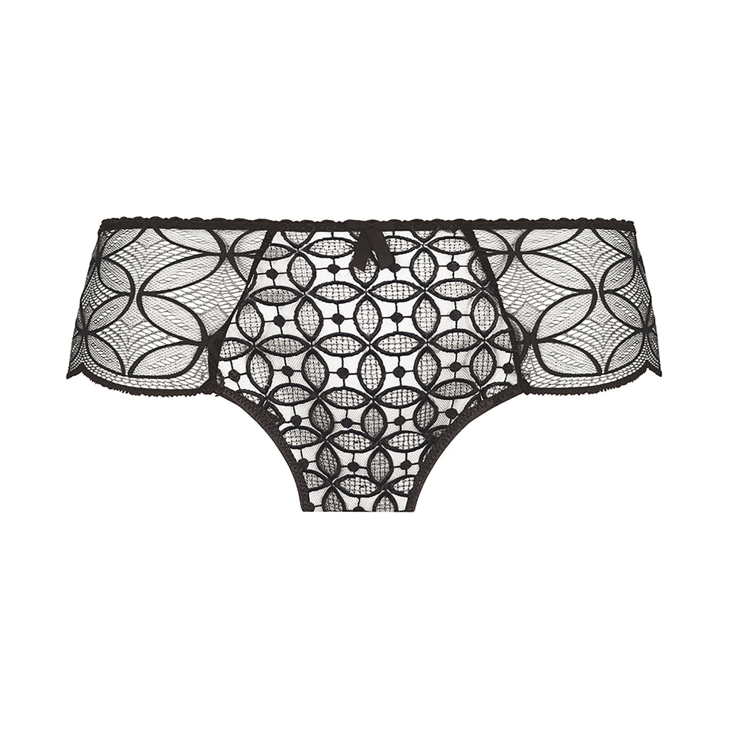 Invisible under clothing and soft to wear, the Romy shorty highlights the silhouette in the most beautiful way with its graphic floral embroidery and its Liquorice color