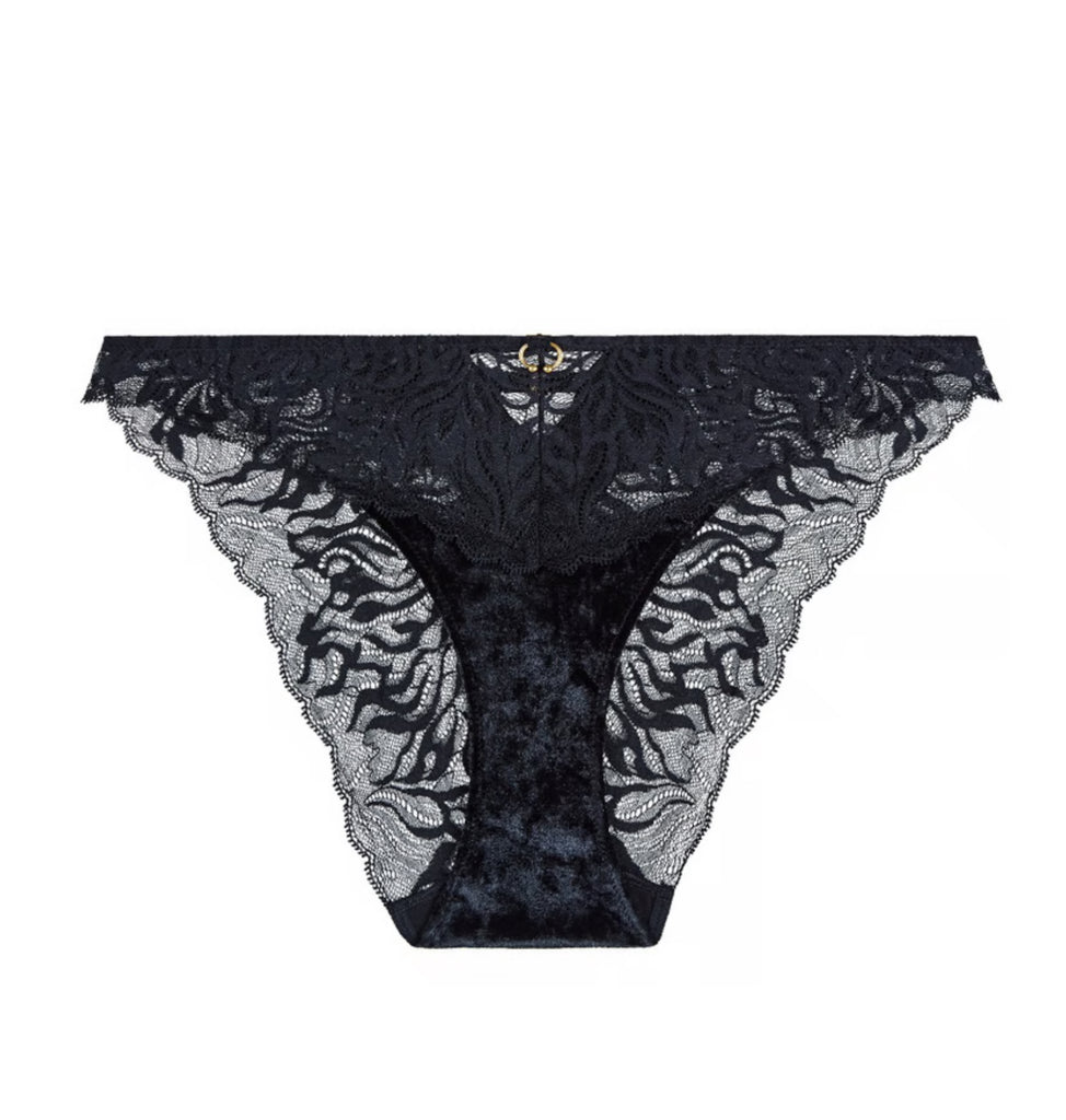The Night Before Italian brief with delicate lace. the back, luxurious soft crushed velvet on the back, inset with a cut-out to unveil sensual bare skin at the small of the back.