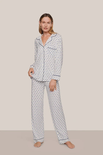 The PJ that started it all. Made from TENCEL™ Modal fibers and a touch of elastane, this buttery soft fabric is verified by OEKO-TEX® Standard 100, meaning it’s dyed with safe and non-toxic dyes. This relaxed long sleeve set features contrast piping, a button-front top with a notch collar and functional pocket, and a low-rise straight leg pant with a thin elastic waistband. Pairs well with our everyday lingerie and blissful ZZZ’s.