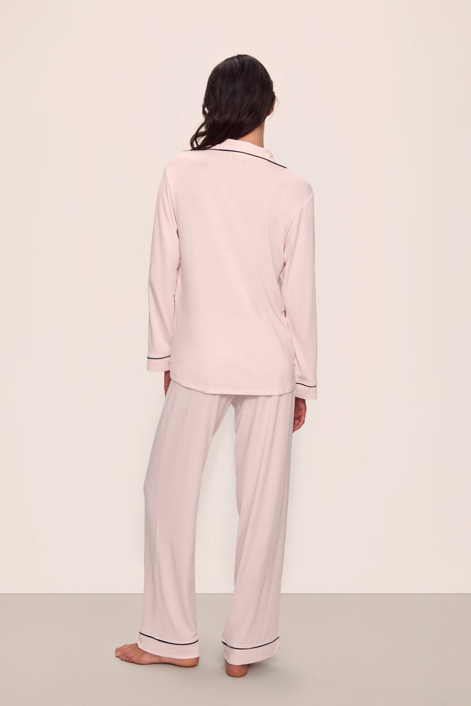 The PJ that started it all. Made from TENCEL™ Modal fibers and a touch of elastane, this buttery soft fabric is verified by OEKO-TEX® Standard 100, meaning it’s dyed with safe and non-toxic dyes. This relaxed long sleeve set features contrast piping, a button-front top with a notch collar and functional pocket, and a low-rise straight leg pant with a thin elastic waistband. Pairs well with our everyday lingerie and blissful ZZZ’s.
