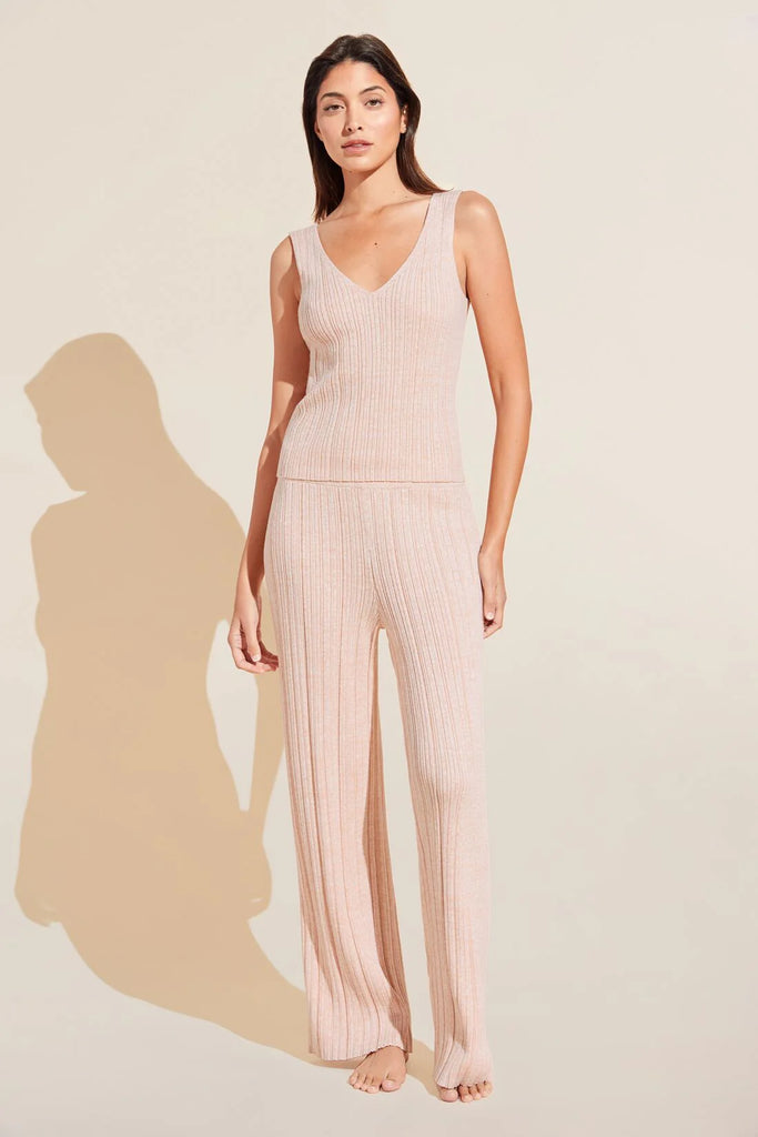 Lounge forever in this infinite knit. Made from breathable Organic Cotton and Recycled Polyester, this fabric is verified by OEKO-TEX® Standard 100, meaning it’s processed without harmful chemicals. This high-rise, straight leg pant features an elastic waistband for a comfortable fit. Boasting a unique variegated rib stitch and marled effect, this lightweight sweater is the perfect staple piece for moderate temps. Pair it with the Sweater Rib V-Neck Tank and Sweater Rib Cardigan for a matching moment.