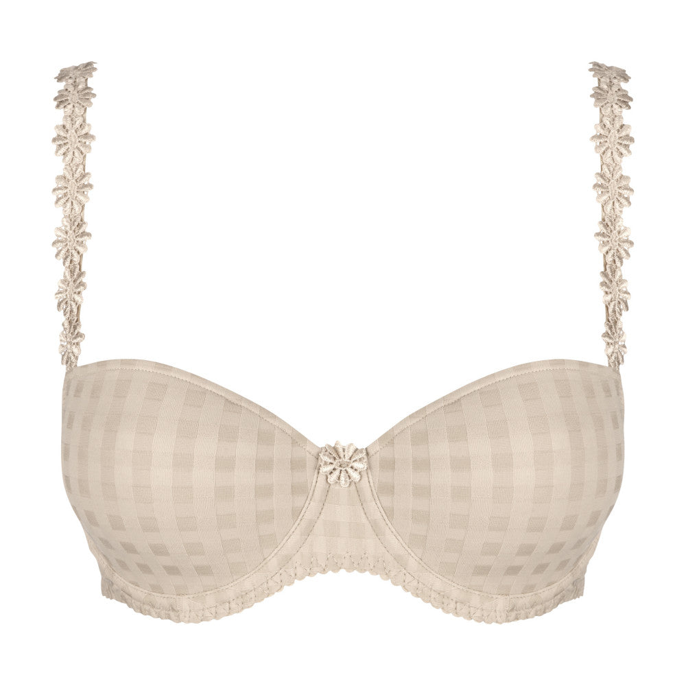 Pre-formed padded balcony bra. The center panel between the breasts sits a little higher. Wear the straps straight over the shoulders or around the neck. Café Latte is a delicate neutral and a must-have in every lingerie drawer.