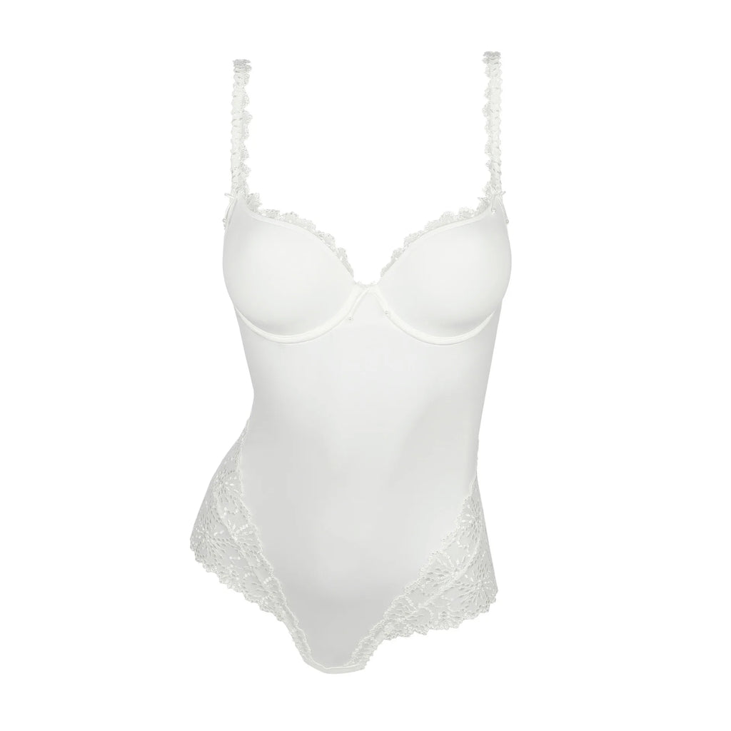 This body has the sexy look of hot pants and opulent embroidery that continues over the hips and to the back. The padded cups create a lovely round shape. With delicate embroidery on the upper trim for the perfect fit. Natural goes with everything and is perfect for brides!