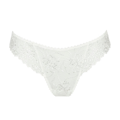Flattering thong in sheer embroidered fabric. Natural goes with everything and is perfect for brides!