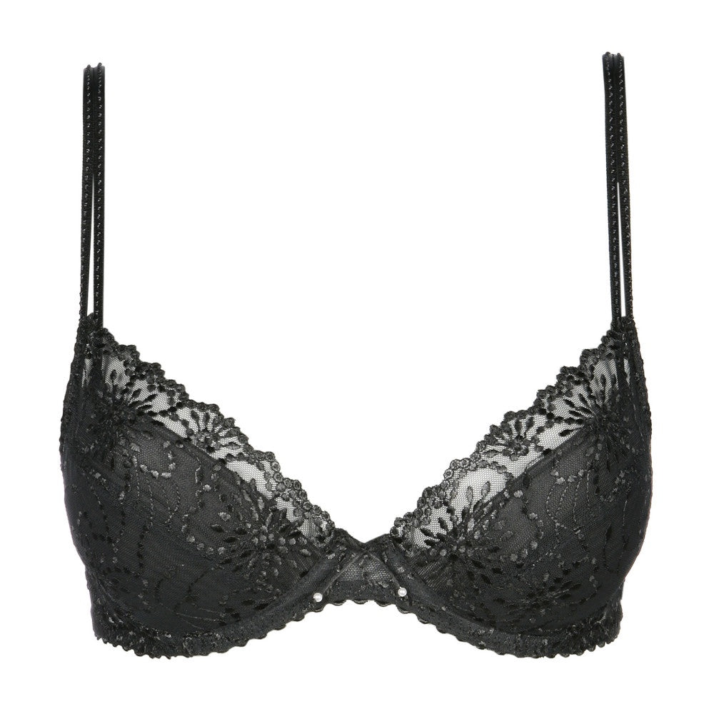The ever popular Jane push-up bra is romantic and feminine with elegant floral embroidery and shimmering pearls. The push-up bra creates elegant cleavage lined with delicate embroidery. Great for wearing under V-neck clothing. Extra coating on the wires for a comfortable fit.