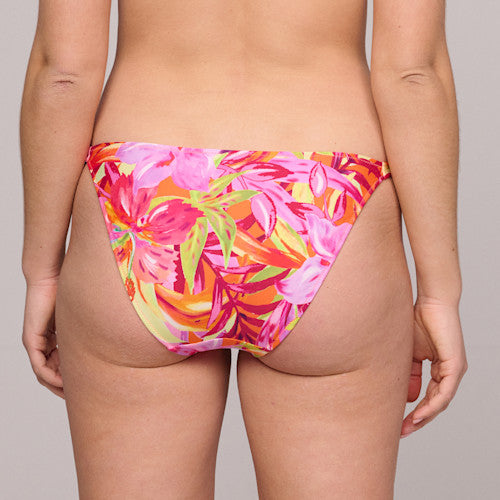 Playful look for lovers of bold prints and bright colours. Cute bikini briefs with playful summery waist ropes, feautures a vibrant tropical print.
