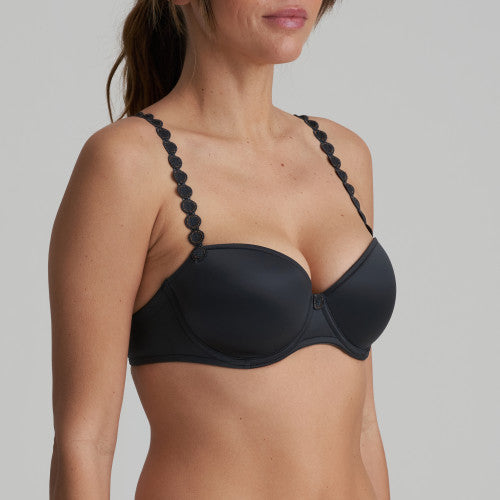 The padded cups of this balcony bra give you a seductive cleavage, while the broader underwiring provides perfect support. The straps can be worn straight or halter-style. Dark gray with a hint of copper in the dotted straps: a combination that gives this sensual style a timeless allure.