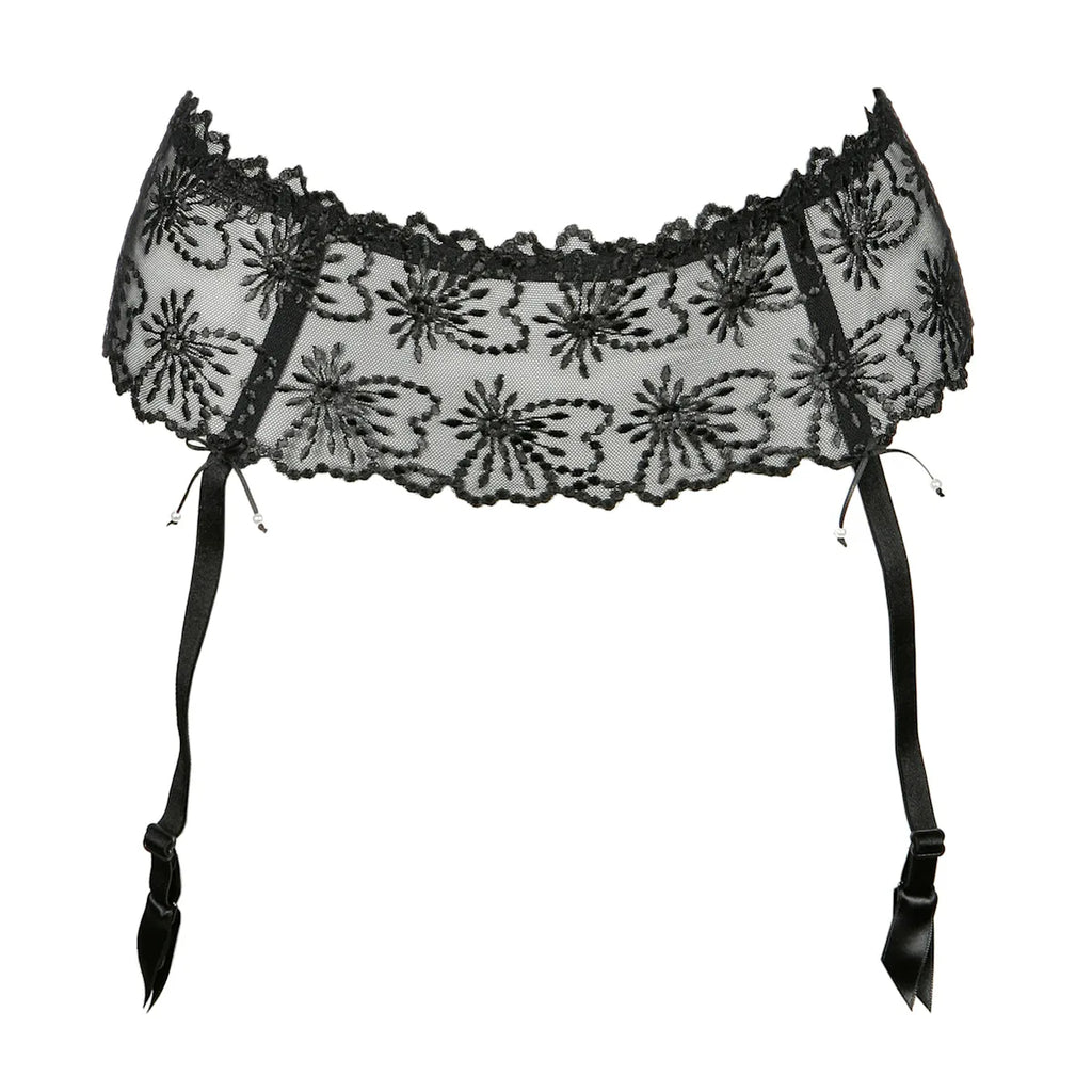 The Jane suspender belt is romantic and feminine with elegant floral lace embroidery and shimmering pearls, hook and eye fasting. Classic suspender belt.