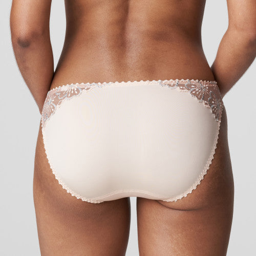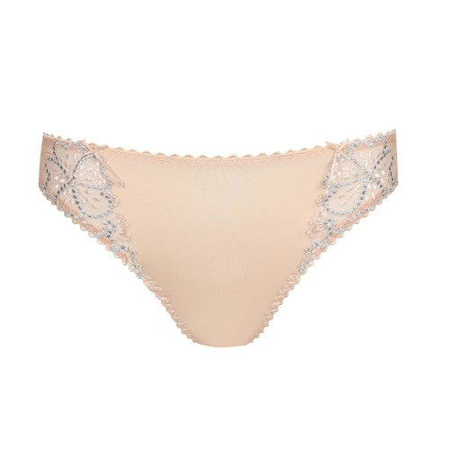 The elegant embroidery runs beautifully over the hips and highlights the elegant cut of the Rio briefs. Pale Peach is a subtle sand colour with a glossy finish
